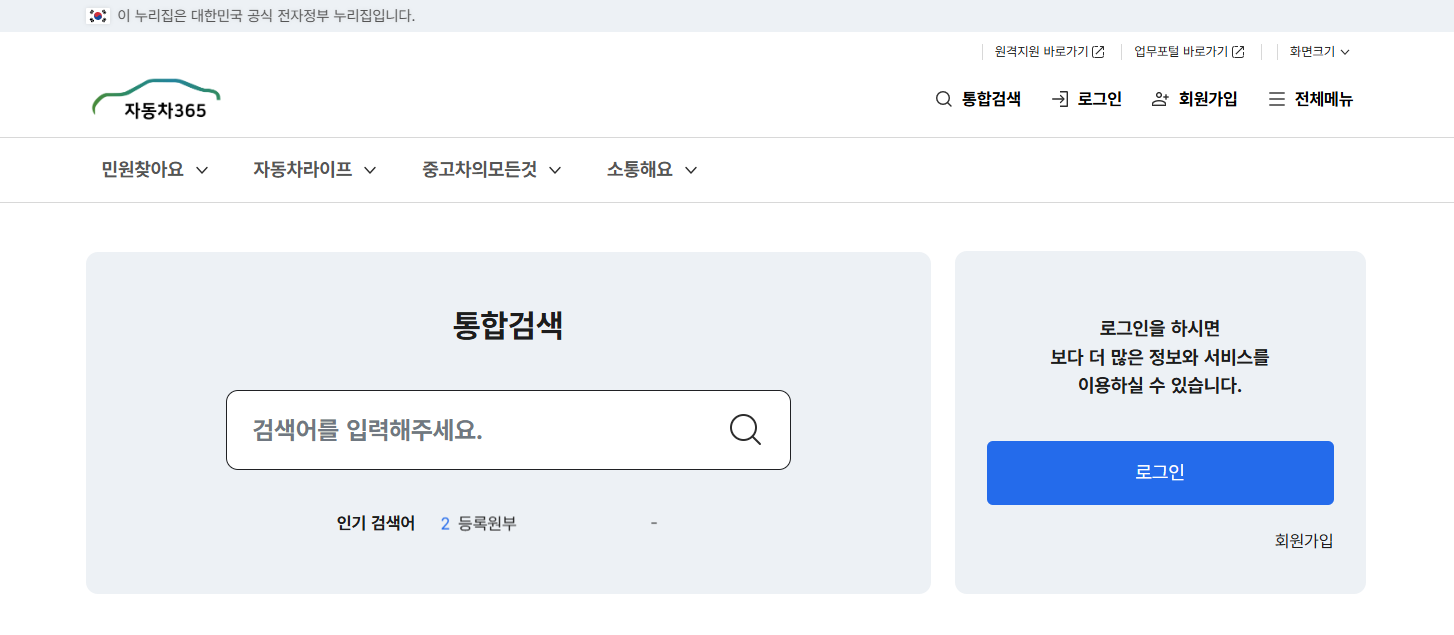 현재 자동차365 공식 홈페이지는 www.car365.go.kr이며, 정부24 홈페이지를 통해서도 접속할 수 있습니다.