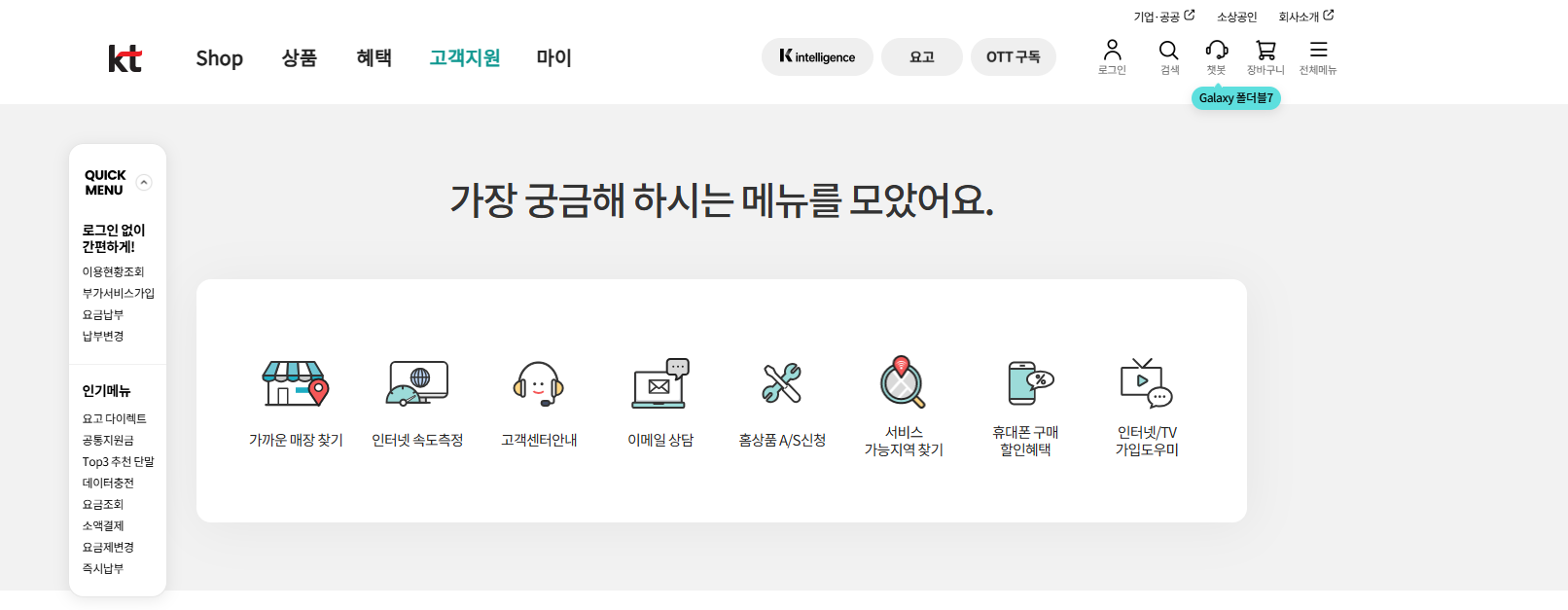 - KT 홈페이지: 온라인 채팅상담 서비스
